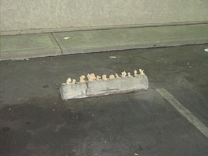I like to work site specifically when it makes sense to do so, outside the gallery system. Here are a few stills of such a piece. I created the Ohlone Project to honor the Native Americans who are buried in the Emeryville shell mound, a site thought to be 2500 years old. As I write this, a strip mall of chain stores has newly opened on top of them. Before construction began, 23 skeletons, 300-400 beads and 2 funerary objects were recovered. The small pouches pictured are made of linen dyed in tea and herbs. They contain organic Native American tobacco, a typical offering of the indigenous people of the San Francisco Bay area. With the pouches I engaged in spatial dialogues at the site of the shell mound and imagined a spiritual dialogue with the original inhabitants of that land.