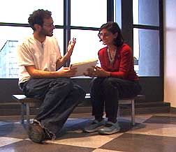 Casondra: So this is, um, you... Mike: Uh-huh. Casondra: ...in the car, driving, looking anguished. This is your girlfriend looking pissed and confused. These are the mountains , because there are mountains in in this region, and snow, on the mountains...and ah, I had the sense it was day. There was something about the idea of the expanse of the planes that seemd more day-like than night-like. So, um, that's my interpretation. And the car--I got green for the car. I don't know if it's a green car, but... Mike: ACTUALLY, IT'S A LIGHT BLUE, GREENISH TINTED CAR. Casondra: Yeah! Mike: I love how you have the color. And there WAS snow when we drove. In the dream itself--it's funny 'cause you know how dreams work; they have all these certain qualities, but none of the specifics? So in other words, there's the car, which I assume would be the same car I drove across the country, BUT I CAN'T EVEN--NOW THAT I THINK ABOUT IT--LIKE I CAN'T IMAGINE ANYTHING IN THE DREAM. I CAN'T EVEN VISUAL IMAGE--IT JUST SEEMS LIKE ALL THIS WEIRD DETACHED STUFF. BUT THIS IS PRETTY CLOSE TO THE REALITY OF EVERYTHING. --except for this is much better looking than I am. Wait, what was the other page? |